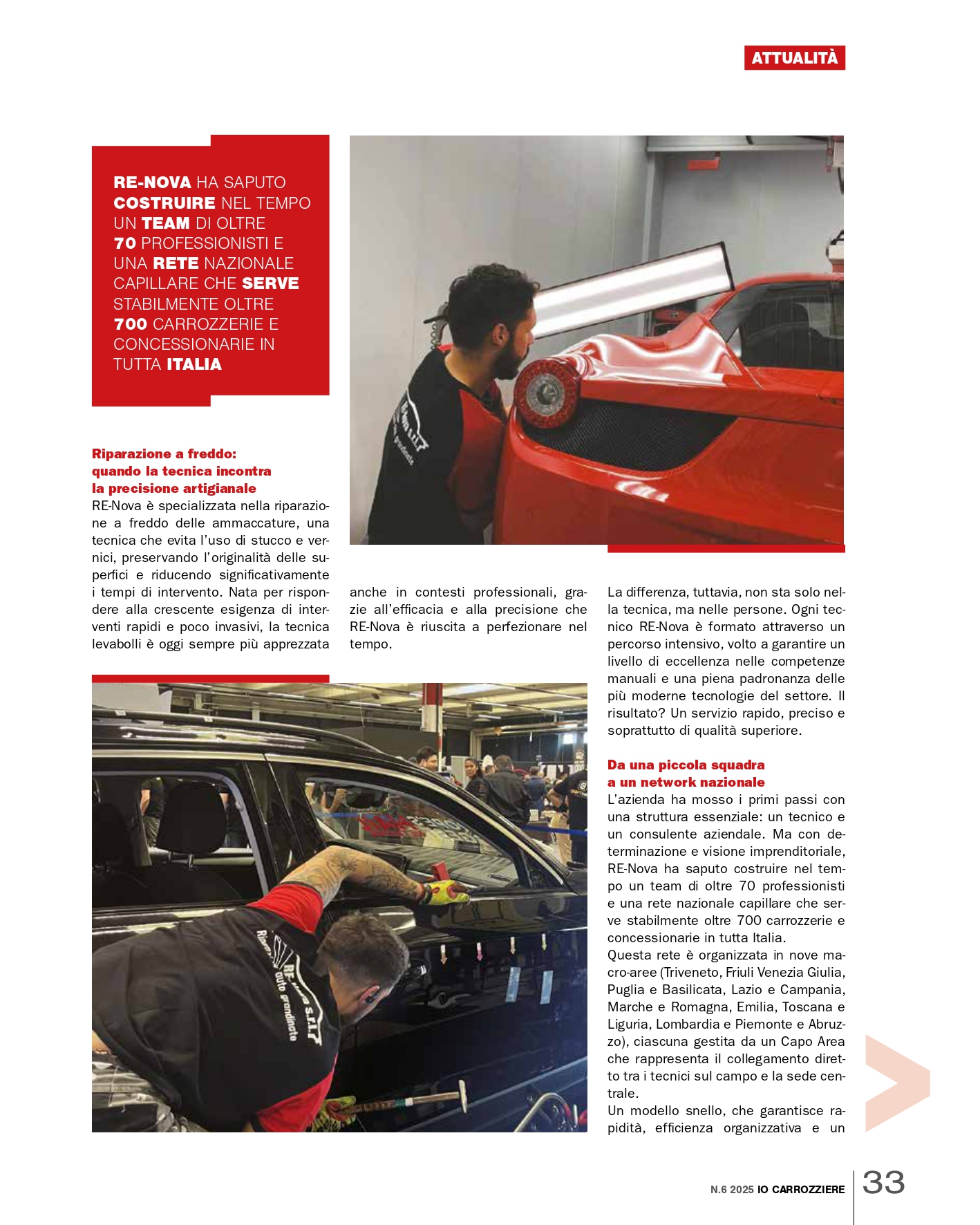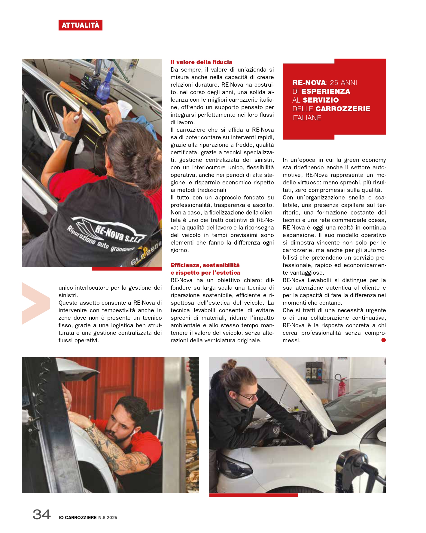 Siamo lieti di annunciare che RE-NOVA è tra le realtà raccontate nel numero di luglio/agosto 2025 della rivista “Io Carrozziere”, punto di riferimento per gli operatori del settore.